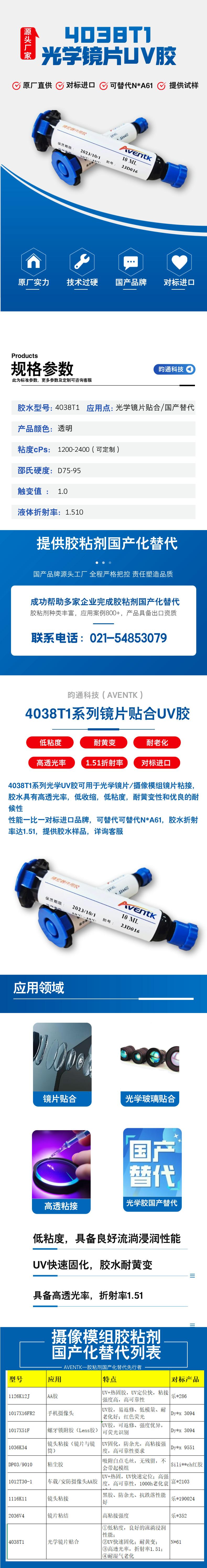 4038T1系列光學(xué)UV膠可用于光學(xué)鏡片/攝像模組鏡片粘接,膠水具有高透光率,低收縮,低粘度,耐黃變性和優(yōu)良的耐候性,性能一比一對標進(jìn)口品牌,可替代可替代N*A61,膠水折射率達1.51,提供膠水樣品,詳詢(xún)客服