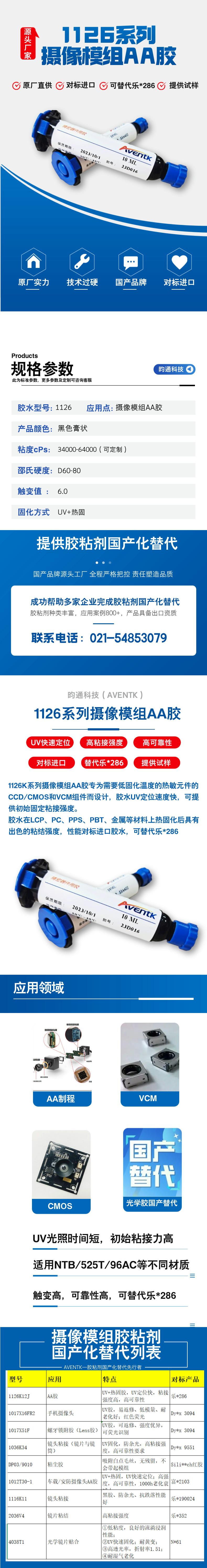 1126K系列攝像模組AA膠專(zhuān)為需要低固化溫度的熱敏元件的CCD/CMOS和VCM組件而設計,膠水UV定位速度快,可提供初始固定粘接強度。在LCP、PC、PPS、PBT、金屬等材料上熱固化后具有出色的粘結強度,性能對標進(jìn)口膠水,可替代樂(lè )*286