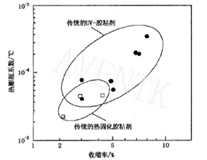 熱膨脹系數定義:物體由于溫度改變而有脹縮現象。其變化能力以等壓(p一定)下,單位溫度變化所導致的體積變化。在選擇UV膠時(shí),熱膨脹系數也是一個(gè)重要參數。由于膠水是對兩種或一種材料間的相互承接,因此UV膠的熱膨脹系數在兩款被粘接材料之間時(shí),其粘接效果最好。利用兩者材料的應力差,增加UV膠的強度。