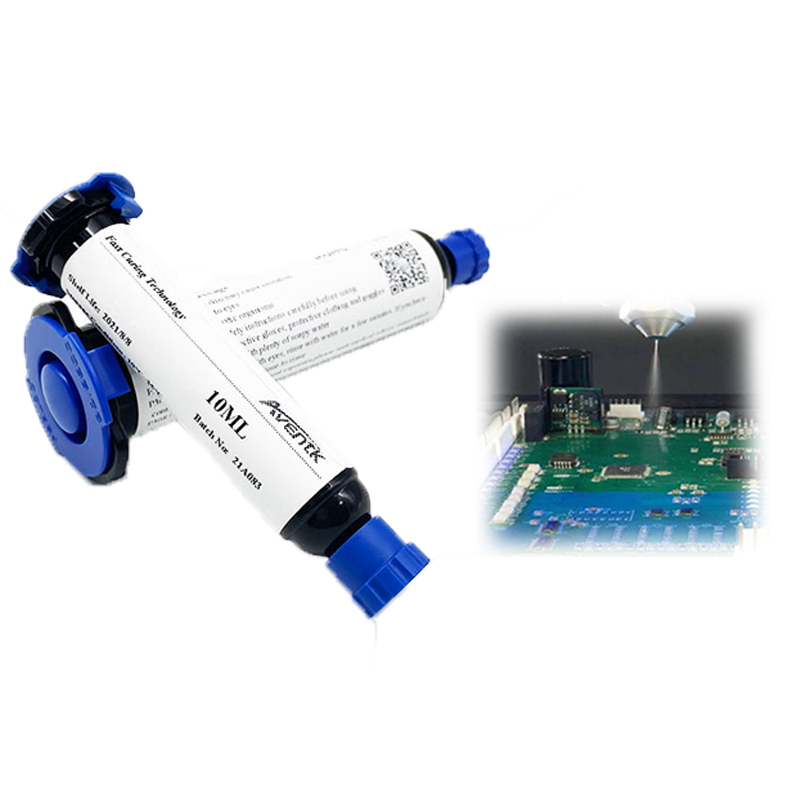 AVENTK 1018系列UV密封膠專(zhuān)為密封應用而設計,膠水在PC板上具有出色的粘合強度,以及出色的耐濕熱循環(huán)性,非常適合用于PC板電子部件密封粘接。這款UV密封膠還具有二次加熱固化的功能,可幫助UV光無(wú)法完全固化的陰影區域完成固化。