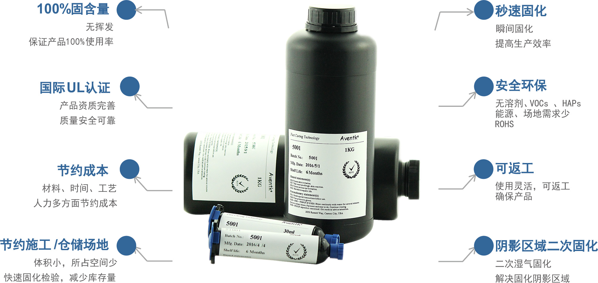 | 傳統溶劑膠水 | AVENTK UV膠 | |