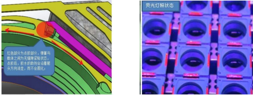 AVENTK低溫熱固膠技術(shù)主要適用于手機模組和微型音圈馬達,目前市場(chǎng)使用的單組份低溫熱固膠存在小縫隙無(wú)法固化的問(wèn)題,即行業(yè)類(lèi)通常所說(shuō)的出油問(wèn)題。這個(gè)問(wèn)題主要是單組分的熱固膠所用的固化劑是固體,顆粒一般大于10μ。當在一些小縫隙中易形成毛細現象時(shí),這個(gè)固態(tài)固化劑無(wú)法通過(guò),從而導致滲透過(guò)去的液體樹(shù)脂無(wú)法固化,即形成所謂的出油現象。