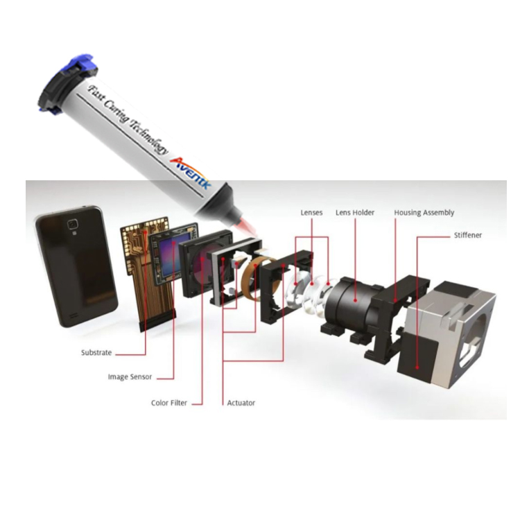 AVENTK作為UV膠水廠(chǎng)家,也針對攝像模組的AA制程工藝研發(fā)生產(chǎn)了一系列AA膠,可用于攝像模組及雙攝像模組AA制程、汽車(chē)攝像模組、手機攝像模組、安防攝像模組、指紋識別模組等應用。